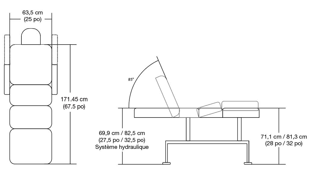- Length: 171.45 cm (67,5 in) without headrest